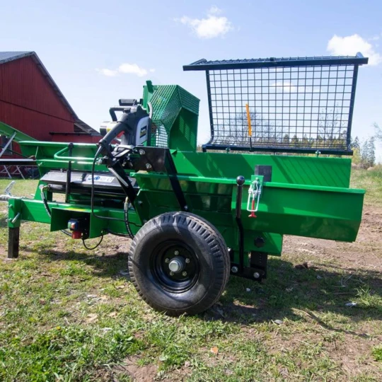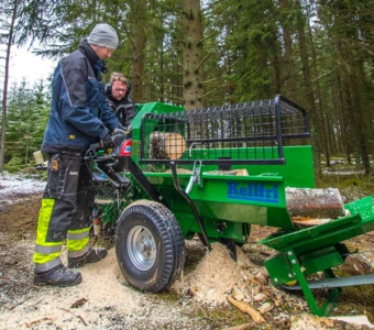 Výkonný elektrický kombajn na palivové dřevo Kellfri je mobilní stroj určený pro bezpečné a efektivní řezání a štípání dřeva v jednom pracovním cyklu. Kombajn zvládá kulatinu o průměru až 28 cm a štípací délce do 60 cm, což z něj dělá ideální řešení pro přípravu palivového dřeva do krbů, kamen i kotlů.