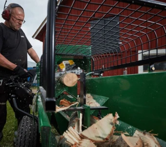 Stroj kombinuje elektrickou řetězovou pilu a hydraulickou štípačku do jednoho kompaktního zařízení, které výrazně šetří čas i fyzickou námahu obsluhy.
