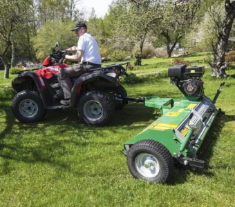 Výkonný mulčovač / kladívková sekačka o šířce 120 cm určený pro připojení za ATV / čtyřkolku, zahradní traktor, UTV i jiné tažné stroje. Tento model je vybaven zadní klapou, která umožňuje lepší rozptyl posekané trávy a zvyšuje rychlost i efektivitu práce bez hromadění materiálu pod krytem.