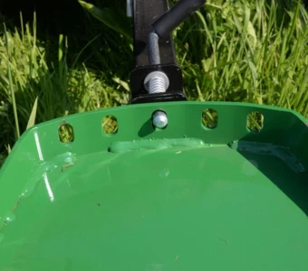 Tento mulčovač je navržen pro náročnější podmínky sekání – rychlý rozhoz trávy s klapou znamená, že materiál se nepřekáží pod strojem, čímž se snižuje odpor a umožňuje vyšší pracovní rychlost. Konstrukce s klapou na zadní straně šetří palivo a zvyšuje efektivitu provozu ve srovnání s mulčovači bez této funkce.