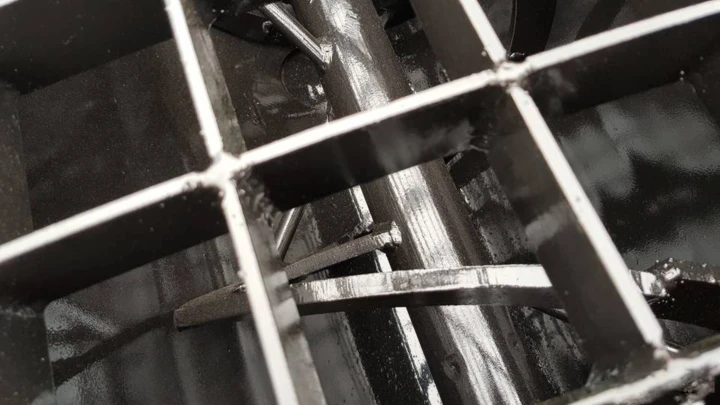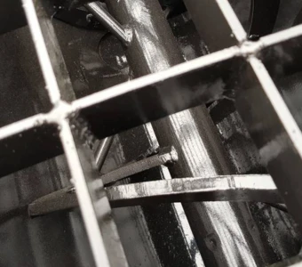 Celá míchačka je vyrobena z masivní oceli, která zvládne vysoké zatížení i práci v náročných podmínkách. Vnitřní míchací mechanismus je navržen tak, aby zajistil rovnoměrné promíchání směsi a stabilní kvalitu betonu.