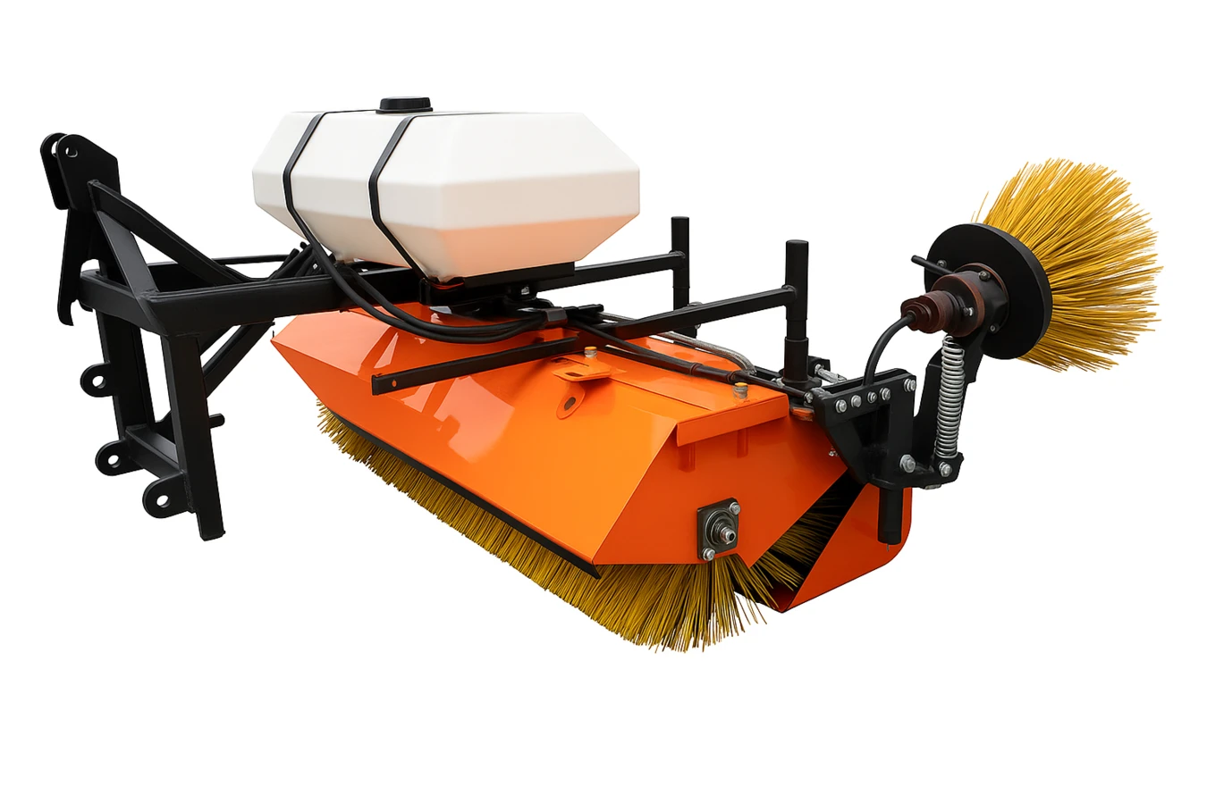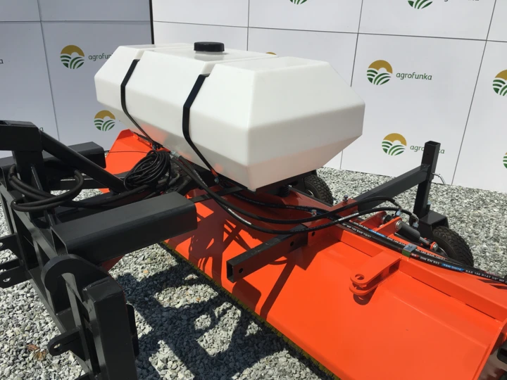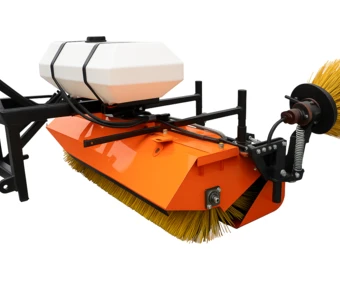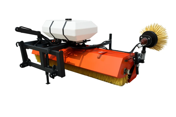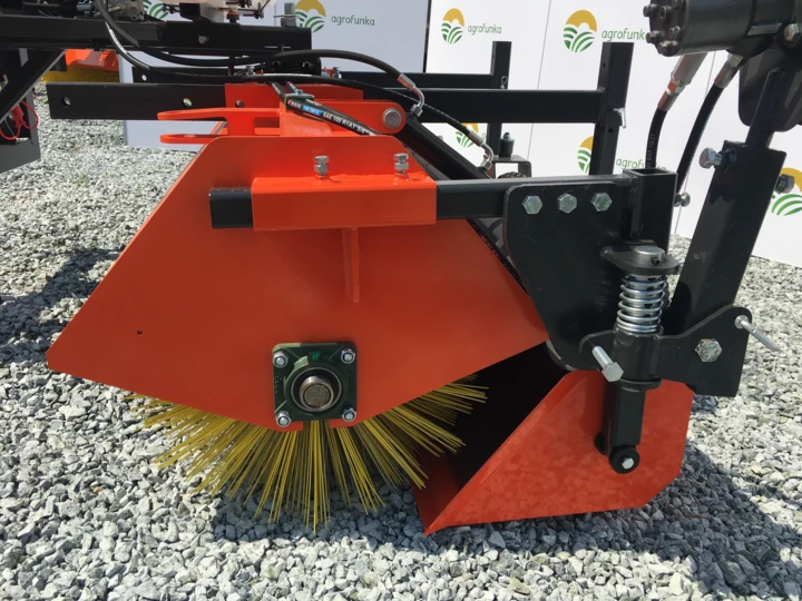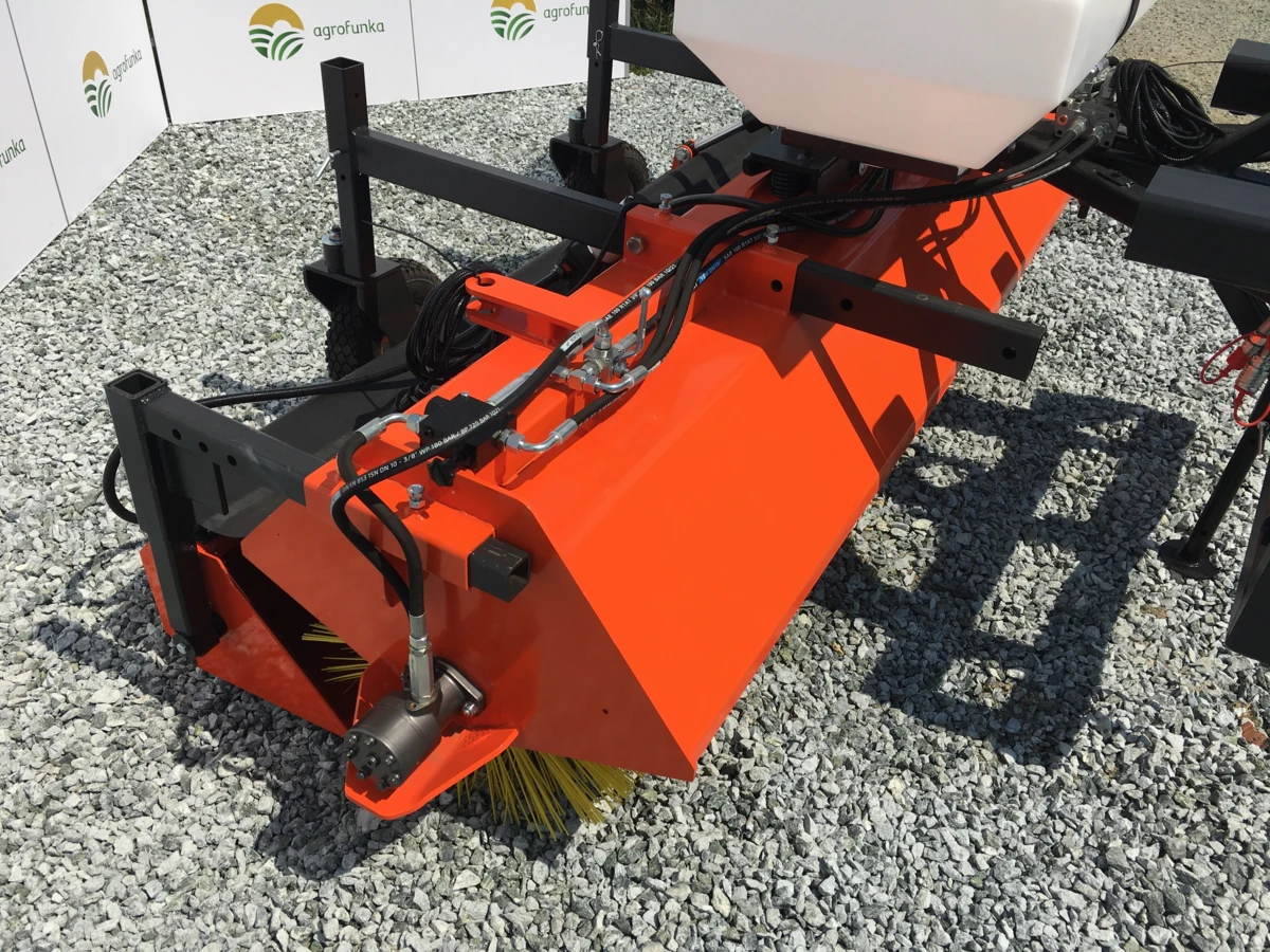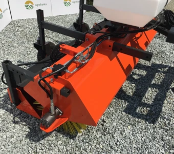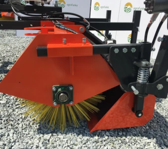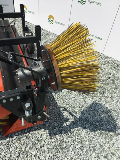 - Boční kartáč: Boční kartáč je součástí standardní výbavy a umožňuje efektivní zametání okrajů a těžko přístupných míst. Rychlost jeho práce lze snadno regulovat pomocí regulátoru průtoku oleje.