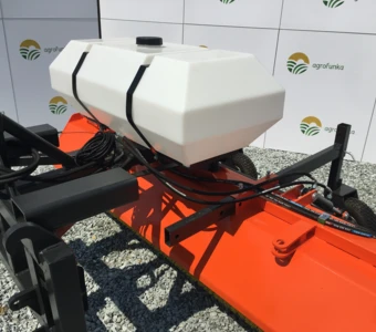 - Postřikový systém: Stroj může být vybaven nádrží na vodu a postřikovací lištou, která zajišťuje vlhčení povrchu a tím snižuje prašnost při práci.