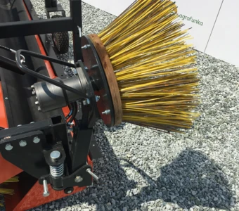 Masivní rám a kvalitní kartáč zajišťují dlouhou životnost i při každodenním provozu. Stroj je navržen tak, aby kopíroval nerovnosti terénu a udržoval rovnoměrný kontakt kartáče s povrchem.